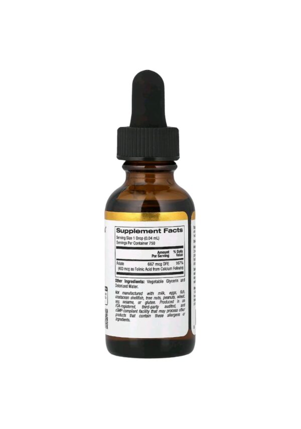 حمض الفولينيك السائل folinic acid California Gold Nutrition – فولات نشط لدعم صحة الخلايا (30 مل)