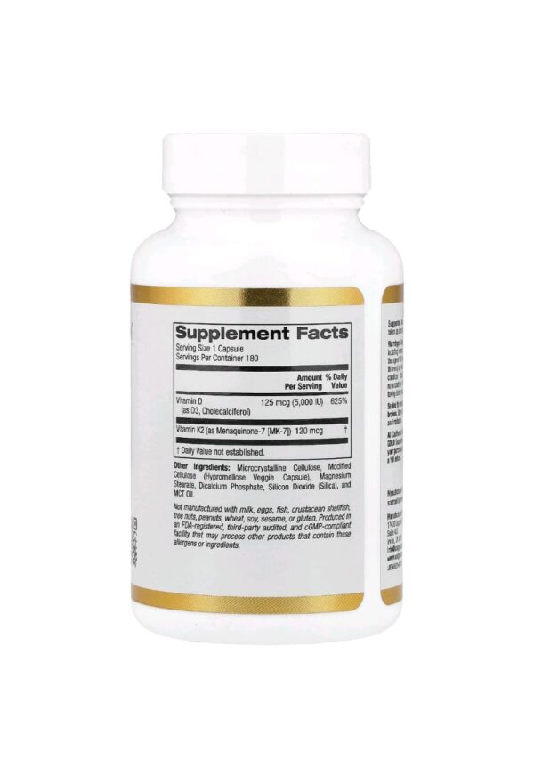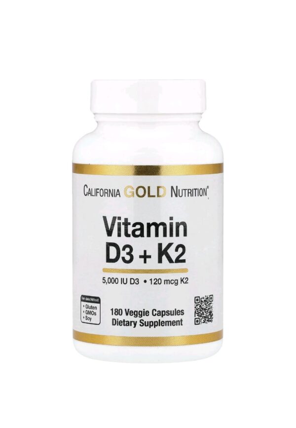 كاليفورنيا غولد نيوتريشن, فيتامين د3 + ك2 في صورة ميناكينون-7، 180 كبسولة نباتية D3 K2