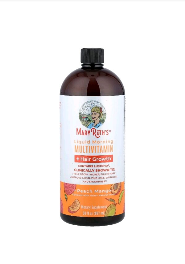 ماري روثس, فيتامينات متعددة سائلة صباحية + لنمو الشعر ، خوخ ومانجو MARY RUTH ، أونصة سائلة (887 مل)