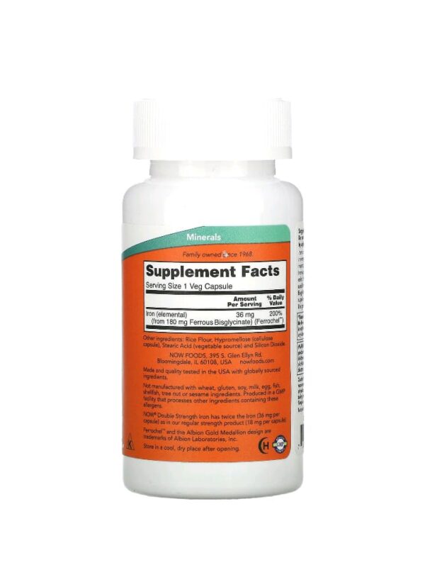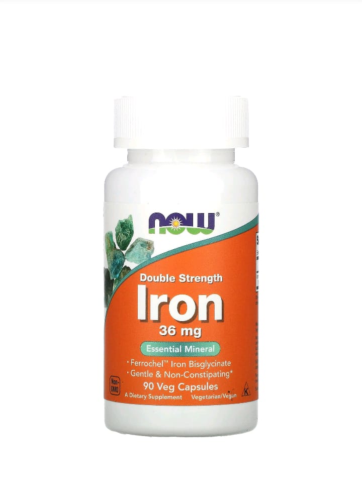 ناو فودز حديد 36 ملجم – 90 كبسولة نباتية Now Foods Iron 36 mg (Ferrochel®) – 90 Veg Capsules
