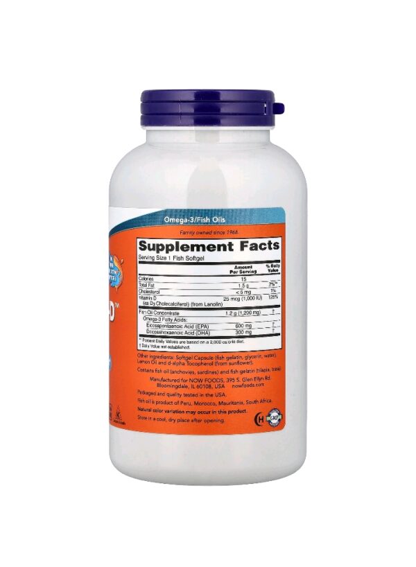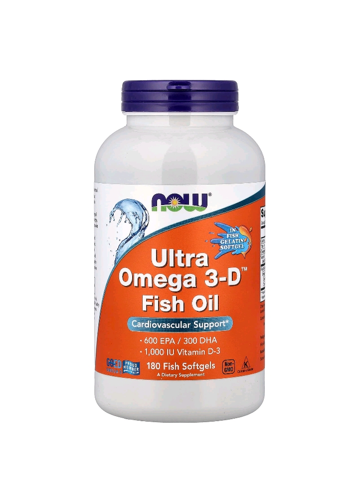 ناو فودز زيت السمك Ultra Omega 3-D™ – 180 كبسولة هلامية سمكية | NOW Foods Ultra Omega 3-D™ Fish Oil – 180 Softgels
