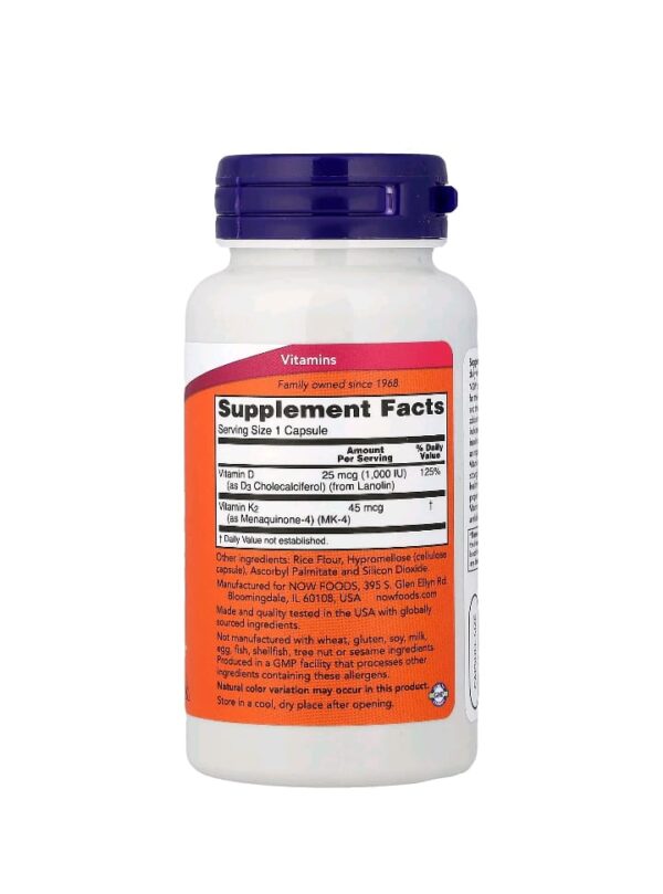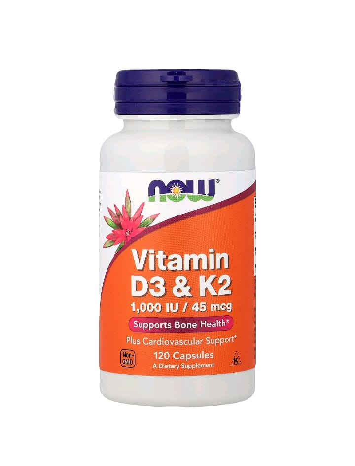ناو فودز فيتامين د3 مع فيتامين ك2 – 120 كبسولة Now Foods Vitamin D3 & K2 – 120 Capsules