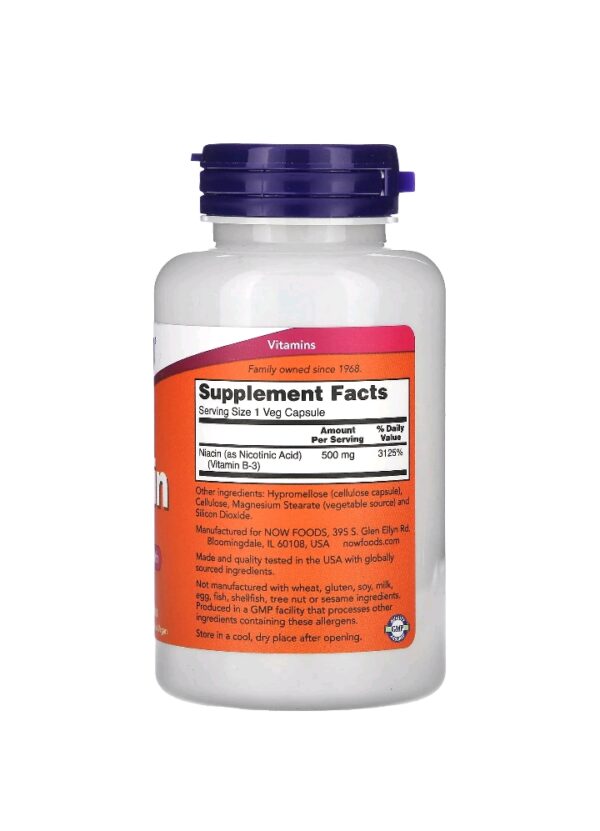 ناو فودز نياسين – 500 ملجم، 100 كبسولة نباتية | b3 NOW Foods Niacin, 500 mg, 100 Veg Capsules