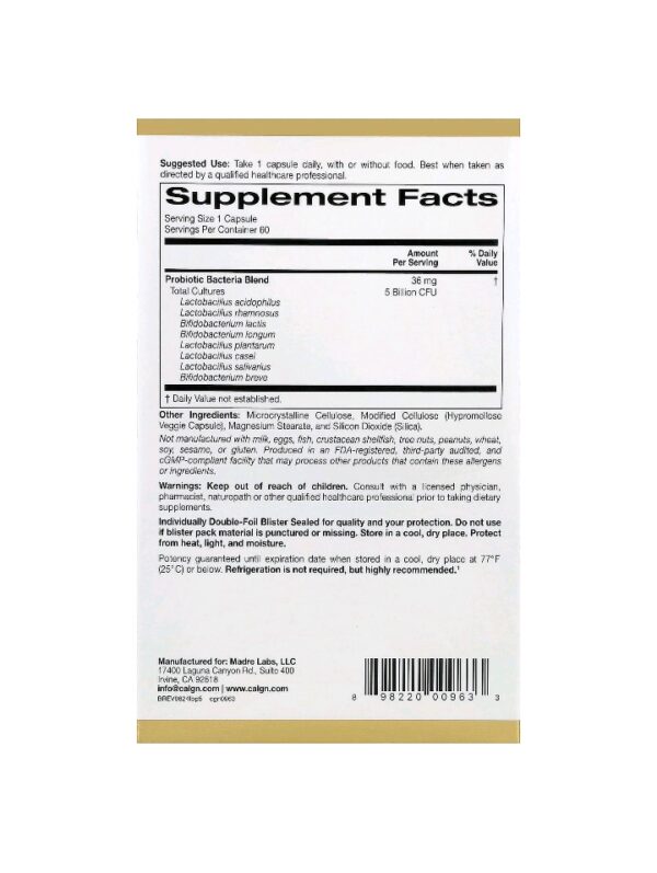 بروبيوتيك California Gold Nutrition LactoBif لاكتوبيف 5 دعم صحة الأمعاء والمناعة (5 CFU)5 مليار